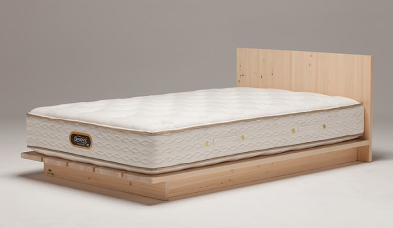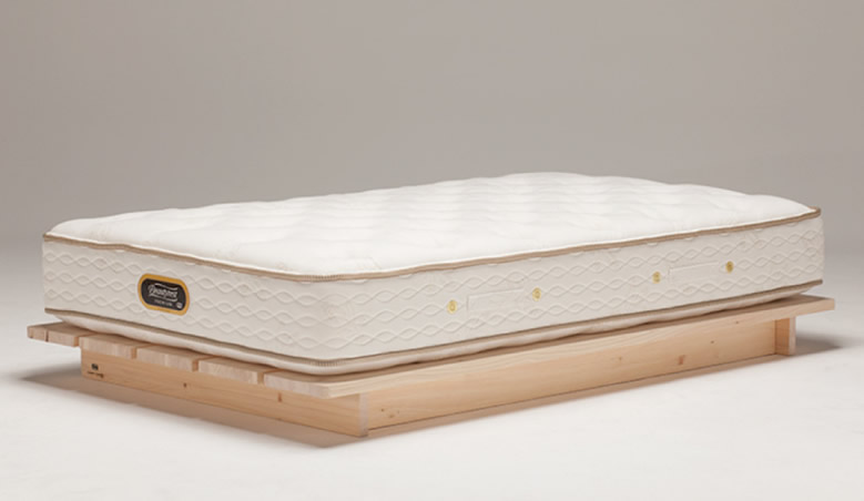 シモンズではこの四万十ひのきの伐採地選定から、製材、乾燥、製品加工の全工程を一貫管理。上質な寝心地のシモンズマットレスとほのかなひのきの香りが最高の眠りを約束してくれる、期待の新シリーズの登場です。