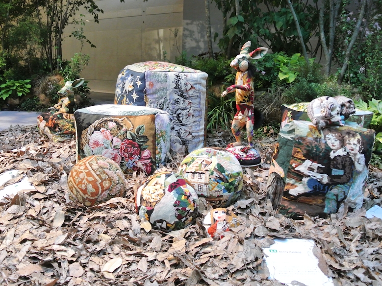 そして、そこにまるで生きているかのように並ぶのが、ニードルポイント刺繍の生地を張り合わせて作られるFREDERIQUE MORREL(フレデリック・モレル)の作品。